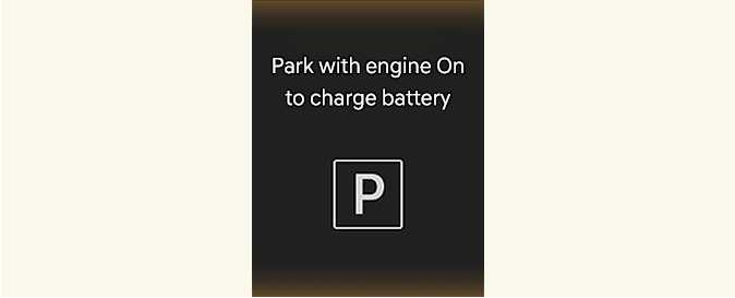 Park with engine On to charge battery (החנה כשהמנוע פועל כדי לטעון את המצבר)