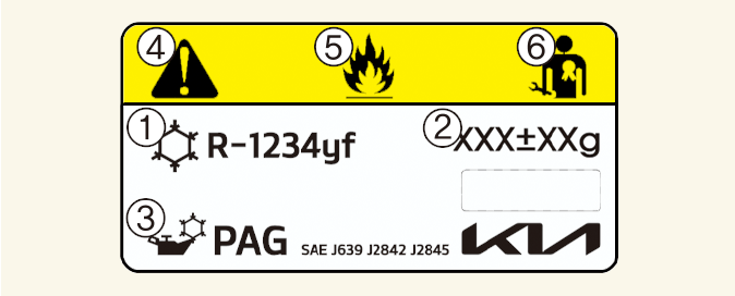 ניתן לבדוק איזה נוזל קירור מיושם במערכת מיזוג האוויר של הרכב לפי התווית שנמצאת בחלק הפנימי של מכסה המנוע.