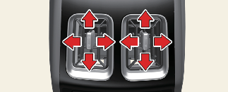 ניתן לכוון את זרימת האוויר מפתחי האוורור באמצעות ידית בקרת פתח האוורור, כמתואר באיור לעיל.