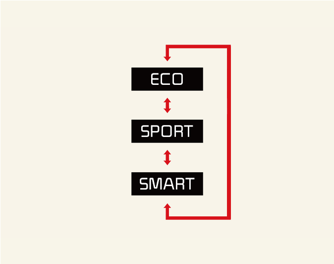 מצב הנהיגה משתנה אוטומטית למצב SMART SPORT רק במצבי נהיגה קשיחים. ברוב מצבי הנהיגה הרגילים, מצב הנהיגה נקבע ל-SMART ECO או SMART NOMAL.