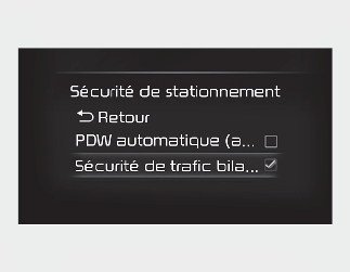 Le réglage du moment et du volume d'avertissement s'applique à toutes les fonctions de l'assistance d'évitement de collision de circulation transversale à l’arrière.