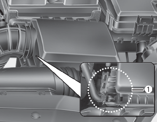 Insérez la charnière (1) et enclenchez les clips pour fixer le couvercle du filtre à air.