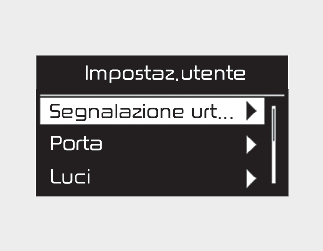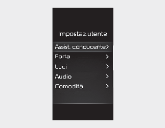 Per la propria sicurezza, cambiare le Impostazioni Utente dopo aver parcheggiato il veicolo, aver attivato il freno di stazionamento e spostato la leva cambio nella posizione P (parcheggio).