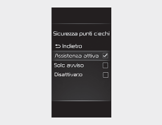 Se si seleziona 'Off', l'Assistenza anti collisione punti ciechi si spegne.