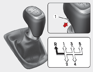 Per muovere la leva del cambio occorre premere il pulsante (1).