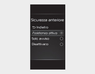 Se si seleziona 'Off', l'Assistenza anti-collisione anteriore si spegne. L’indicatore