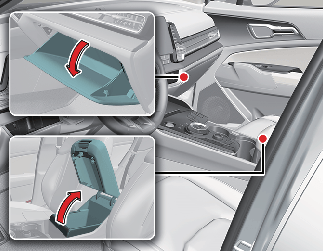 Keskikonsolin säilytys-/hansikasrasian avaaminen