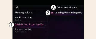 Driver Attention Warning settings