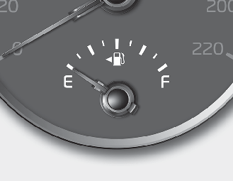 Sinun on pysähdyttävä ja hankittava lisäpolttoainetta mahdollisimman pian, kun varoitusvalo syttyy tai kun mittarin neula lähestyy ”0”- tai ”E (tyhjä)" -kohtaa.