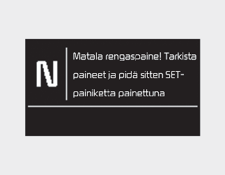 ) syttyy, kun renkaassa havaitaan alipainetta. Tietyissä tyypeissä yllä oleva viesti saattaa ilmestyä kojelautaan.