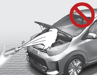 Moottoritilan pesemiseen vedellä, sisältäen korkeapainepesun, voi aiheuttaa moottoritilassa olevien sähköpiirien vaurioitumisen.