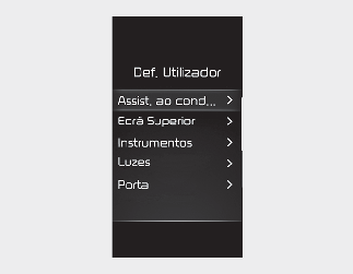 Para alterar as definições de Assist. ao condutor, prima o botão OK no volante durante mais de 1 segundo quando o modo Assistência à condução for apresentado.