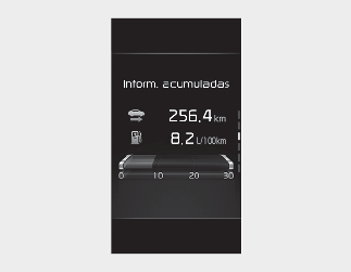 O modo de computador de bordo apresenta informações relacionadas com os parâmetros de condução do veículo, incluindo, entre outros, informação acumulada e informações de condução.