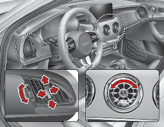 As grelhas de saída de ar podem ser abertas ou fechadas separadamente, usando o seletor rotativo.