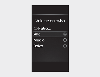 Se alterar o volume do aviso, o volume do aviso de outras funções de assistência ao condutor poderá mudar. Defina o volume de aviso após o ter memorizado de forma suficiente.