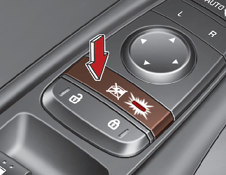 O condutor pode desativar os interruptores dos vidros elétricos das portas dos passageiros do banco traseiro premindo o botão de bloqueio dos vidros elétricos para a posição LOCK (Trancar).