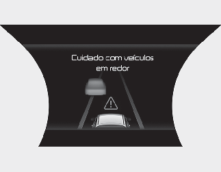 Na seguinte situação, a mensagem de aviso "Watch for surrounding vehicles" (Cuidado com veículos em redor) é apresentada no painel de instrumentos e é emitido um aviso sonoro para avisar o condutor para as condições da estrada em frente.
