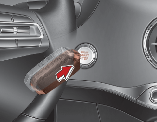 Se a bateria estiver com pouca carga ou a Smart Key não funcionar corretamente, é possível ligar o motor premindo o botão ENGINE START/STOP (Ligar/desligar o motor) com a Smart Key.