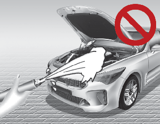 As lavagens com água no interior do compartimento do motor, incluindo as lavagens com água a alta pressão, podem provocar a avaria dos circuitos elétricos situados no compartimento do motor.