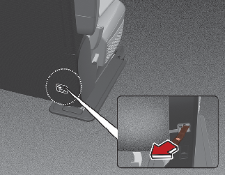 A 2. üléssori ülés előrehajtására szolgáló kapcsoló a 3. üléssori ülés jobb oldalán található.
