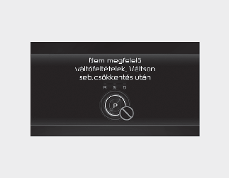 Ez az üzenet akkor jelenik meg az LCD-kijelzőn, ha a sebességváltó P (parkolás) állásba áll, amikor a jármű mozgásban van.