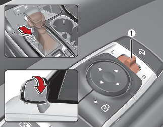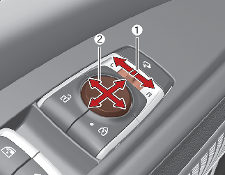 Press a corresponding point on the mirror adjustment control (2) to position the selected mirror up, down, left or right.