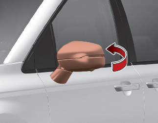 In case it is an electric type outside rear view mirror, don't fold it by hand. It could cause motor failure.