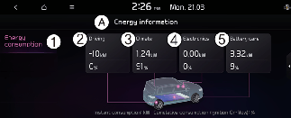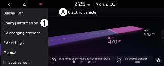 Chcete-li si zkontrolovat aktuální spotřebu energie jednotlivých systémů vozidla, vyberte na obrazovce možnost Menu → Energy information (Informace o energii).
