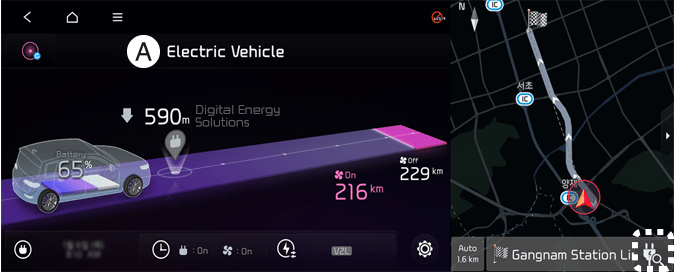 Vyberte EV a prohlédněte si mapu na obrazovce informačního systému. Vyhledají se stanice v okolí aktuální polohy.
