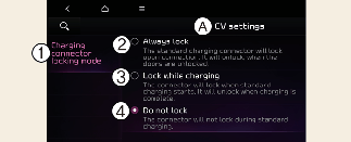 Vyberte EV → ikona nastavení na obrazovce → Režim uzamčení nabíjecího konektoru v informačním a zábavním systému.