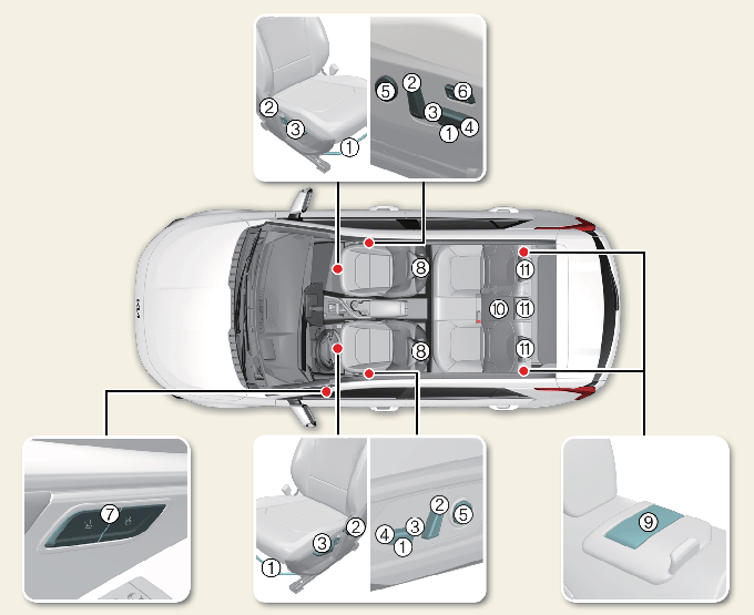 * Výše uvedený obrázek se vztahuje k vozidlům s levostranným řízením. U vozidel s pravostranným řízením se ovládání předního sedadla nachází na opačné straně.