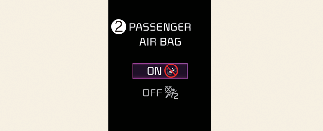 Pokud zrušíte výběr nabídky PASSENGER AIR BAG, přední airbag spolujezdce se deaktivuje.