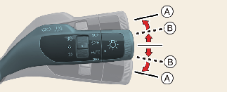 Páčkou směrových světel pohněte vzhůru nebo dolů (B).