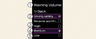 Pokud je vybrána možnost Driving safety priority (Priorita bezpečnosti jízdy), hlasitost zvuku se dočasně sníží, aby byl řidič varován zvukovým upozorněním na bezpečnou jízdu.