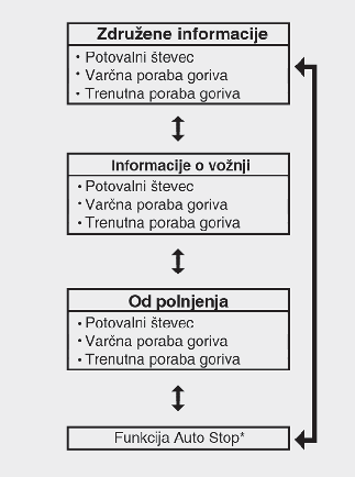 Če odprete voznikova vrata po izklopu motorja ali ko minejo 3 minute po ponovnem zagonu motorja, se informacije o vožnji ponastavijo.