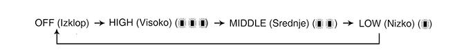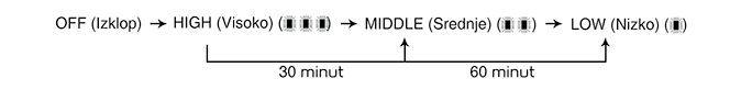 Pri vsakem pritisku na gumb se nastavitev temperature sedeža spremeni sledeče: