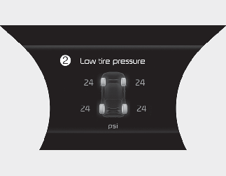 Kontrolna lučka položaja nizkega tlaka v pnevmatikah (prikazana na zaslonu LCD)