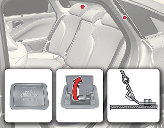 توجد الحوامل الخطافية لنظام تثبيت مقاعد الأطفال في درج المجموعة.