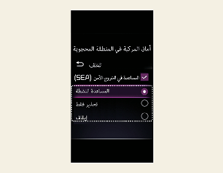 عندما يكون المحرك قيد التشغيل، حدد أو ألغ تحديد "Driver Assistance (مساعدة السائق) ← Blind-Spot Safety (أمان المركبة في المنطقة المحجوبة)" من قائمة Settings (الإعدادات) لتحديد استخدام كل وظيفة من عدمه.