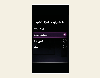 إذا تم تحديد "Warning Only (تحذير فقط)"، لن تعمل أنظمة المساعدة الخاصة بالفرامل والتوجيه (إذا كانت السيارة مجهزة بذلك).
