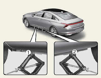 الشاشة الرئيسية > ما يتعين فعله في حالات الطوارئ > في حالة الإطار المفرغ من الهواء (مع وجود إطار احتياطي) > تغيير الإطارات