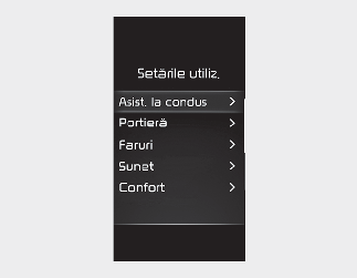Pentru siguranța dvs., modificați setările utilizatorului (User Settings) după parcarea vehiculului, aplicarea frânei de parcare și mutarea schimbătorului de viteze în P (Parcare).