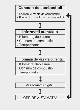 - După pornirea autovehiculului: Consumul se va reseta automat după 4 ore de la aducerea contactului în poziția OFF (oprit).