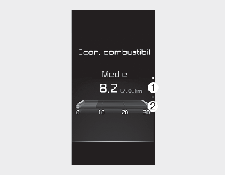 Acest mod afișează consumul instantaneu de combustibil din timpul ultimelor secunde când viteza vehiculului este mai mare de 8 km/h (5 mile/h).
