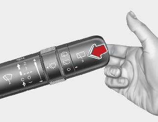 În poziția O (Oprit), trageți ușor maneta spre dumneavoastră pentru a pulveriza lichidul de spălare pe parbriz și pentru a opera ștergătoarele 1-3 cicluri.