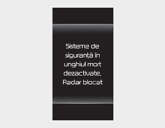 în acest caz, sistemul Siguranță unghi mort se va dezactiva. Mesajul de avertizare ‘Radar blocked’ (Radar blocat) va apărea pe panoul de bord.