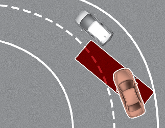 Sistemul Siguranță în punct mort poate să nu funcționeze corect la rularea pe un drum cu curbe. Este posibil ca asistența pentru avertizarea coliziunilor în punctul mort să nu detecteze vehiculul de pe banda alăturată.