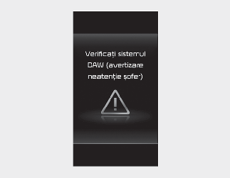 Când sistemul de Avertizare atenție șofer nu funcționează corect, mesajul de avertizare ‘Check Driver Attention Warning (DAW) system’ (Verificați sistemul de Avertizare atenție șofer (DAW)) va apărea pe panoul de bord.