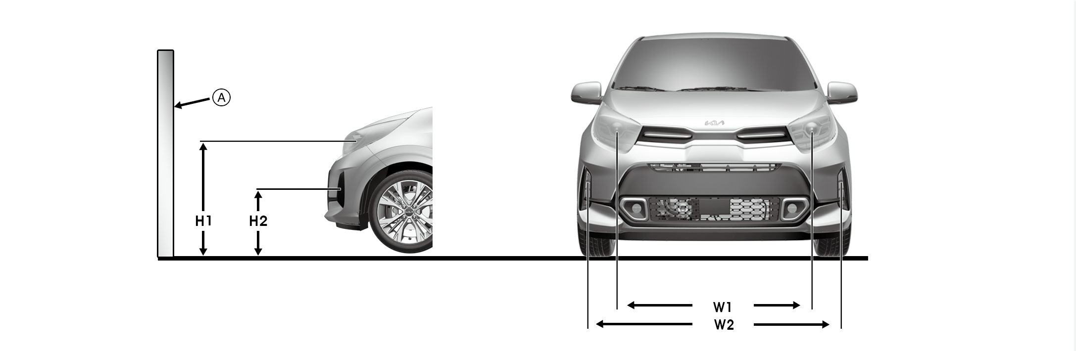 Cu farul și bateria în stare normală, direcționați farurile astfel încât porțiunea cea mai luminoasă să cadă pe liniile orizontale și verticale.