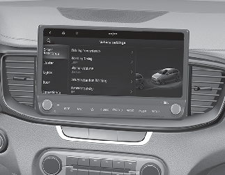 Ustawienia pojazdu w systemie multimedialnym udostępniają użytkownikowi możliwość zmiany wielu ustawień, w tym funkcji blokowania/odblokowywania drzwi, funkcji udogodnień, ustawień wspomagania kierowcy itp.